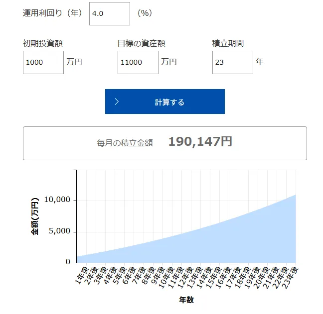 結果、上記の通り毎月の積立金額は 190,147円 となりました。